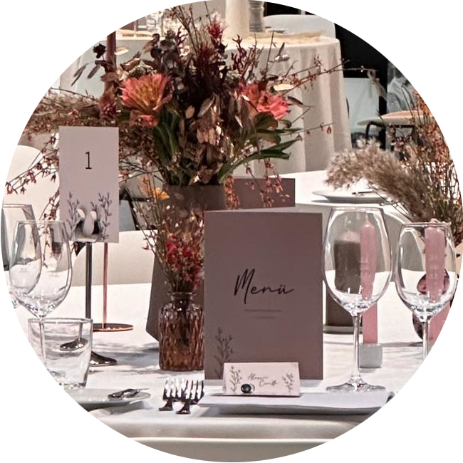 Unsere individuelle Tischdekorationen verleihen Deiner Familien- und Firmenfeier, egal ob Hochzeit, Kommunion oder Geburtstag, eine zauberhafte Atmosphäre. Von eleganten Blumenarrangements bis hin zu maßgeschneiderten Designkonzepten – wir sorgen dafür, dass jeder Tisch zu einem unvergesslichen Blickfang wird.